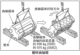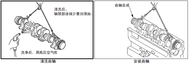 注: 起吊曲軸時(shí),為了防止曲軸受到損傷要填入布團或其他墊料起吊。