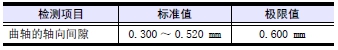 超過(guò)標準值時(shí),檢測推力片和曲軸。標準值以?xún)葧r(shí),在最后端的主軸承端蓋螺栓旋松的狀態(tài)前后移動(dòng)曲軸,再次檢測。