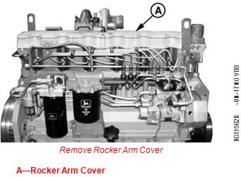 2. Remove rocker arm cover (A) with vent tube.